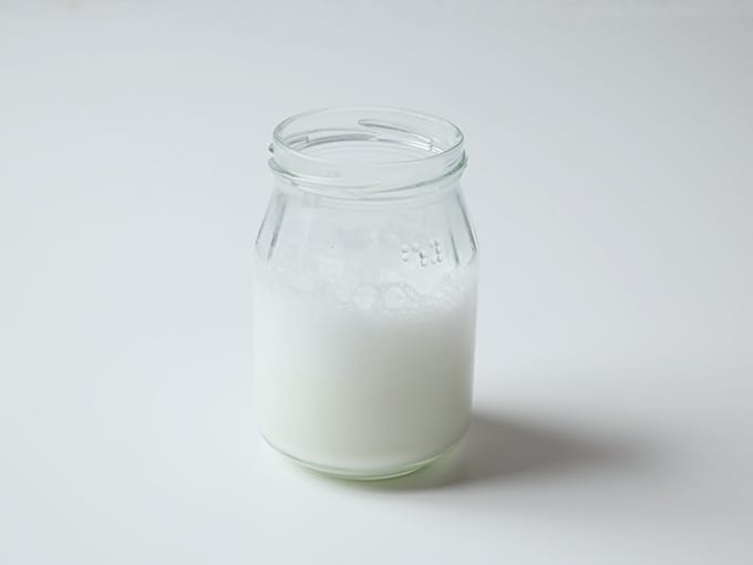 耐熱の深めのフタつき容器にフォームドミルク用の牛乳を入れる。フタをせずに、70℃程度になるように電子レンジ600Wで30秒~40秒加熱して取りだし、フタをしてよくシェイクし泡立てる。フタを開けて再び電子レンジ600Wで20秒加熱する。※吹きこぼれる恐れがあるので目をはなさないでください。