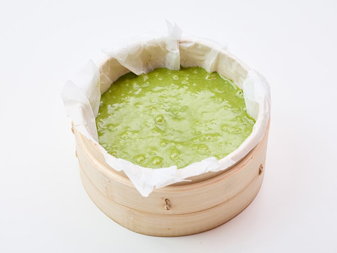 生地はせいろの半分程度まで流し入れるのがおすすめです。入れすぎると膨らんだ生地がフタにくっつくことがあります。