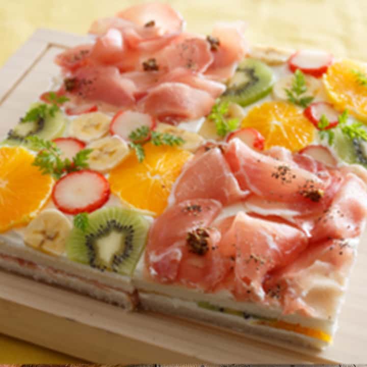 サンドイッチの上にいろんな具材を盛り付けすることで華やかな見た目になります。素敵な午後のティーパーティーにピッタリです。