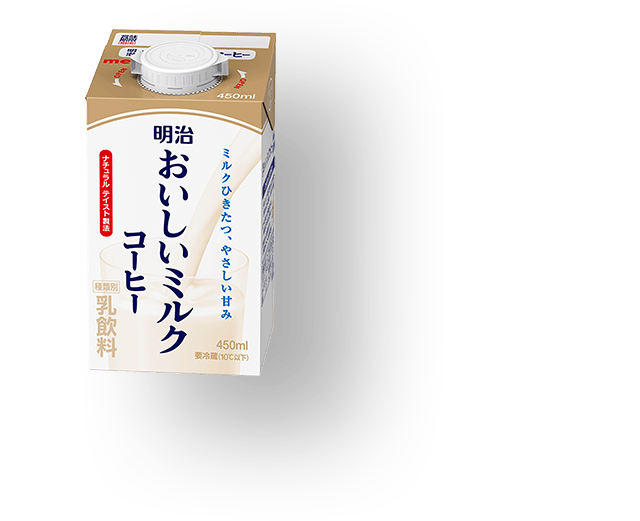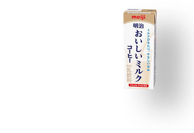 明治おいしい牛乳と同じこだわりの生乳をふんだんに使用し(生乳50%以上)、乳のおいしさを引き立たせる香り豊かなコーヒーをブレンドした、「明治おいしいミルクコーヒー」