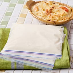 伝統的なイギリスの魚介料理を、みんなで楽しめる簡単おもてなしメニューにアレンジした一品です。濃厚なマッシュポテトの下には、ミルクと魚介の旨味がつまったソースがたっぷり入っています。