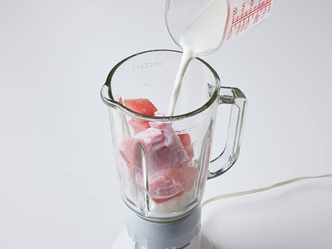牛乳を入れることでコクのあるスムージーに仕上がります。ミキサーで手軽に作れます。※調理の目安時間は、冷凍時間を除きます。