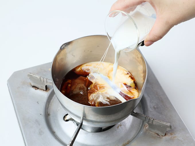 1に紅茶を入れ、弱火で3分~4分煮出す。