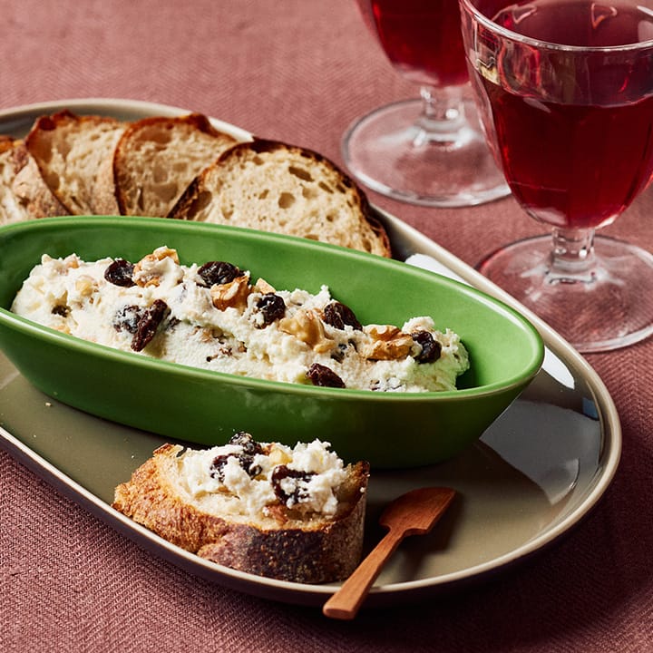 クリームチーズにレモン汁、1とレーズンを混ぜ、器に盛りつける。