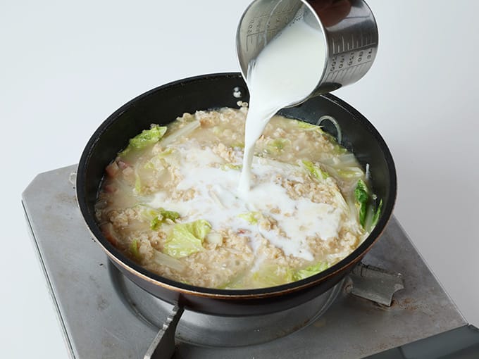 オートミールをしっかり加熱することで、とろみのあるなめらかな食感に仕上がります。