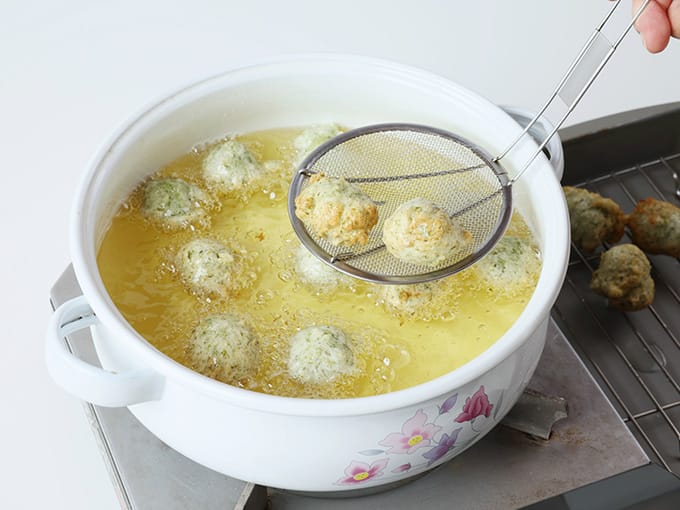 揚げ油を170~180℃に熱し、1をスプーンで落とし、転がしながら揚げる。