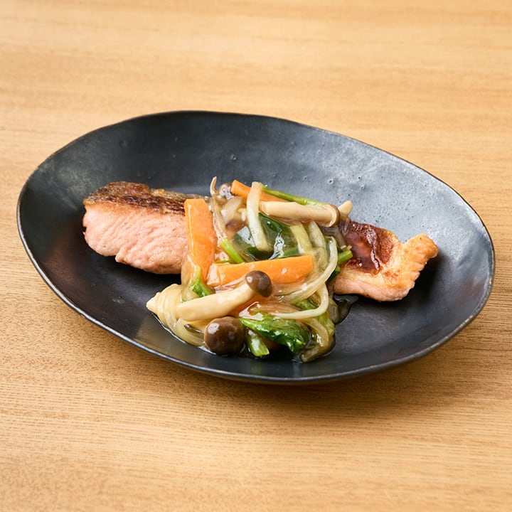 野菜たっぷりの甘酢あんで大人も子どもも喜ぶ一品。たっぷりのあんが鮭によく絡み、ごはんが進む味わいです。